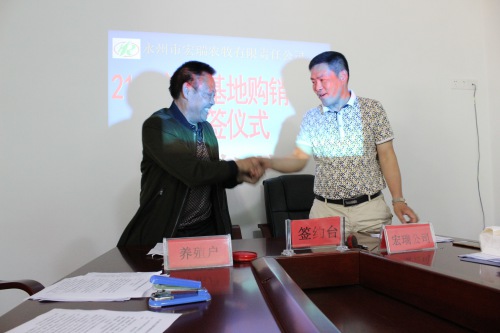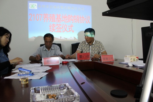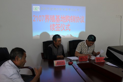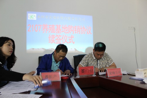 2017年5月9日在永州市宏瑞农牧责任有限公司小会议隆重举行了“2017年度养殖基地购销协议续签仪式”,出席仪式的公司领导有董事长兼总经理邱海军先生、副董事长兼副总经理曾宪宝先生、办公室主任李剑先生,出席仪式的养殖基地老板有罗诗德、胡知训、胡远忠等12位。仪式由副总经理曾宪宝主持,仪式共有三项议程,第一项议程:公司总经理邱海军先生致词;第二项议程:养殖户技术经验交流;第三项议程:续签养殖基地合作协议;第四项议程:合影留念。